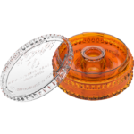 Wykonany został z tworzywa sztucznego w kolorze pomarańczowym. Akcesorium otwierane jest do góry.