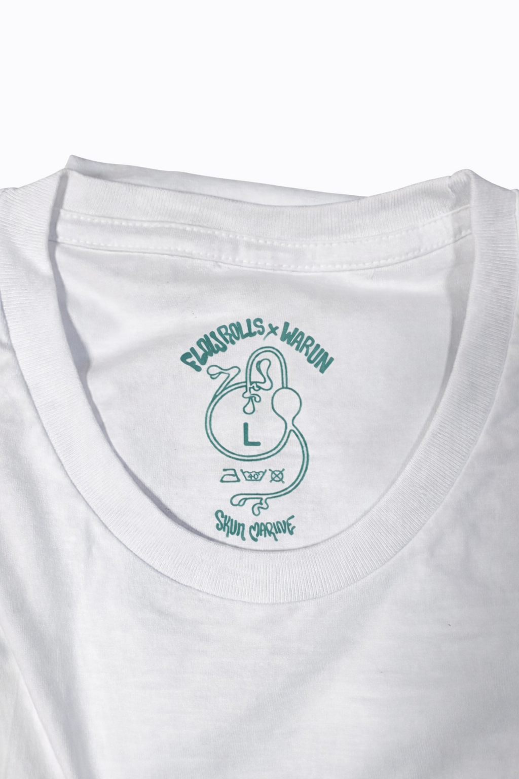 Koszulka powstała w kolaboracji Flowrolls x Warun i została zaprojektowana przez warun.tattoo – charakterystyczna grafika i wyraźny styl, który od razu przyciąga wzrok.