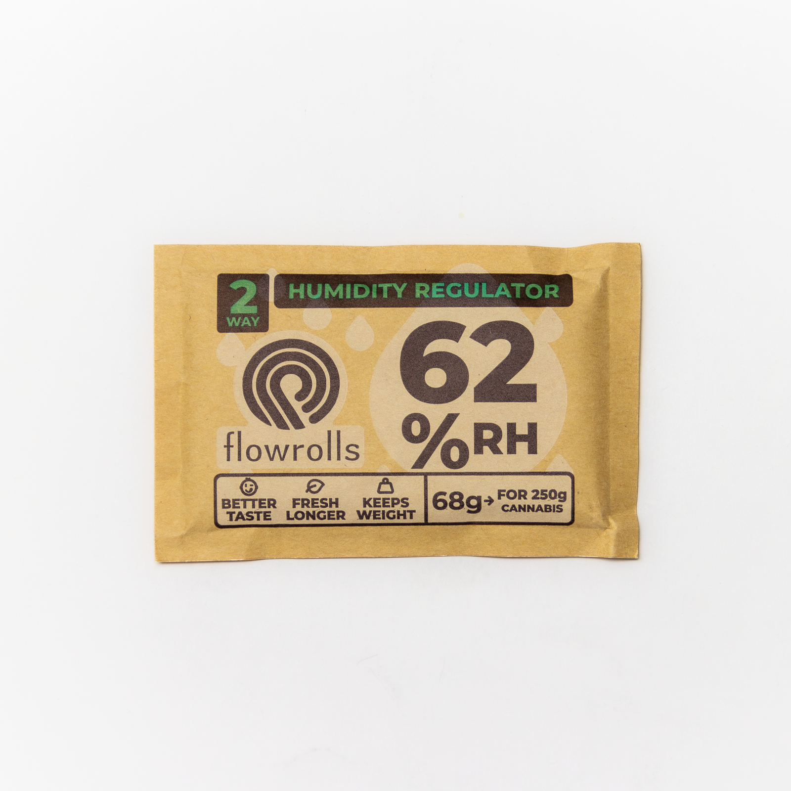 Dlatego regulator wilgotności Flowrolls 62% działa jak bufor bezpieczeństwa, który monitoruje mikroklimat w pojemniku i utrzymuje stały poziom wilgotności na optymalnym poziomie około 62%.